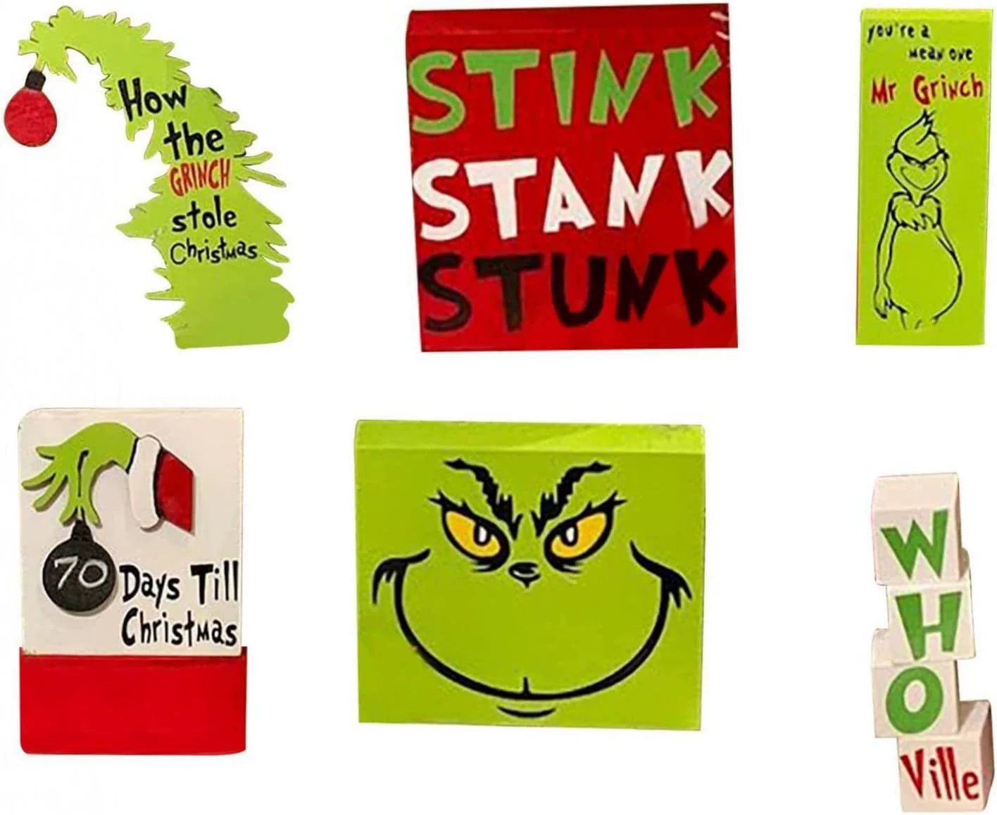 - Signs feature three different designs : Merry Grinchs, StinkStank Stunk, Believe.